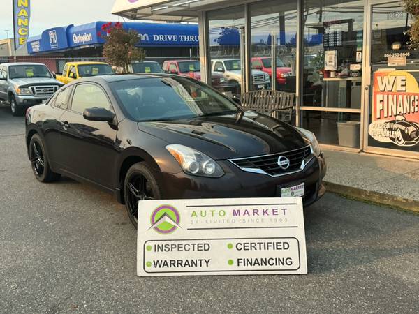 BEAUTIFUL CONDITION WELL CARED FOR NISSAN ALTIMA S COUPE WITH BRAND NEW TIRES AND RIMS! BRAKES HAVE 60% REMAINING FRONT AND REAR AND EVERYTHING ELSE CHECKED OUT IN EXCELLENT CONDITION. LOCAL, 2 OWNER CAR WITH NO ACCIDENTS EVER. IT COMES WITH A SECOND SET OF SNOW TIRES ON RIMS TOO! HEATED LEATHER SEATS, BLUETOOTH AND BACK UP CAMERA AS WELL. FULL SERVICE HISTORY ON THE CARFAX. YOU WON'T FIND A CLEANER ALTIMA COUPE, STOP BY TODAY FOR A TEST DRIVE.