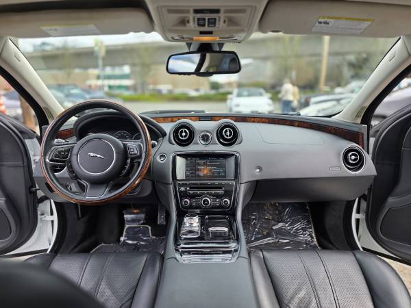 2014 Jaguar XJ With 105556kms, It Features 340 Horsepower 3.0L V6 Supercharged Engine Paired With 8-Speed Automatic Transmission Layered With All-Wheel-Drive System, Premium Leather Upholstery with Contrast Stitching, Heated and Cooled Front and Rear Seats, 14-Way Power-Adjustable Front Seats with Memory, Four-Zone Climate Control, Panoramic Glass Roof with Power Sunblinds, Wood Veneer Interior Trim, 8" Touchscreen Infotainment System, Navigation System with Voice Control, Meridian™ Sound System, Bluetooth Connectivity for Phone and Audio, Rearview Camera and Front/Rear Parking Sensors, Blind Spot Monitor, Adaptive Cruise Control, Lane Departure Warning, Forward Collision Alert, Stability and traction control, Multiple airbags and advanced braking system, And Much More!