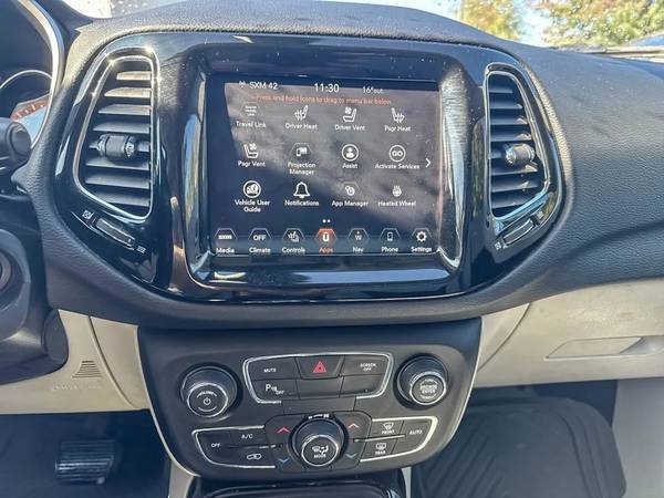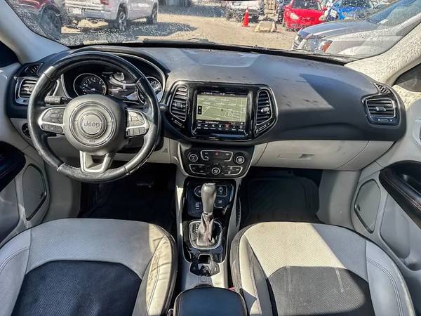 Our 2020 Jeep Compass Limited 4x4 features UCONNECT 4C NAVIGATION, LEATHER HEATED FRONT SEATS, POWER 8-WAY DRIVER SEAT, DUAL-PANE SUNROOF, POWER LIFTGATE, REAR PARK ASSIST, BLIND-SPOT/REAR CROSS PATH DETECTION, a leather wrapped and HEATED steering wheel with mounted audio and cruise controls, Apple Carplay & Google Android Auto, Beats audio premium sound system, a/c with dual zone temperature control, Bluetooth, remote USB port, automatic headlamps, fog lamps, a back-up camera, electric park brake, windshield wiper de-icer, a remote starter, Luxury Seat Group with Ventilated front seats, Trailer Tow Group with Class III hitch receiver, Safety & Security Group, Park-Sense Rear Park Assist System, Blind-Spot Monitoring w/ Rear Cross-Path Detection, Monotone paint and even more!!