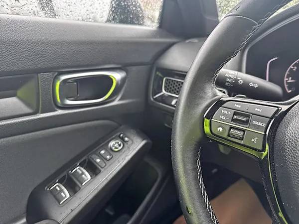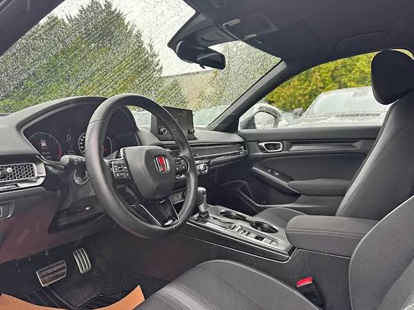 Some features included with this 2025 Honda Civic Hatchback Sport include CLOTH HEATED FRONT SEATS, MANUAL FRONT SEATS, A BACK-UP CAMERA, auto dim rearview mirror, black alloy wheels, APPLE CARPLAY and ANDROID AUTO, 2 sets of keys and more.