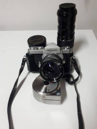 Nikon camera with telephoto and wide angle lens and a carry case will trade for pieces of hardwood or woodworking tools