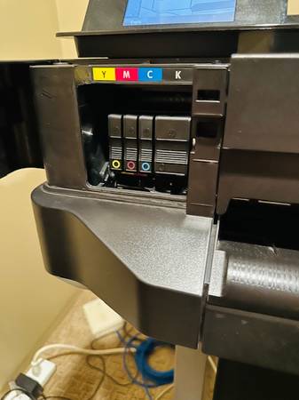 The workhorse of the Plotter industry Plots paper size 24" wide x 96" Lg and everything in between. New plotter head Full color All new color cartidges Two spare black ink cartridges