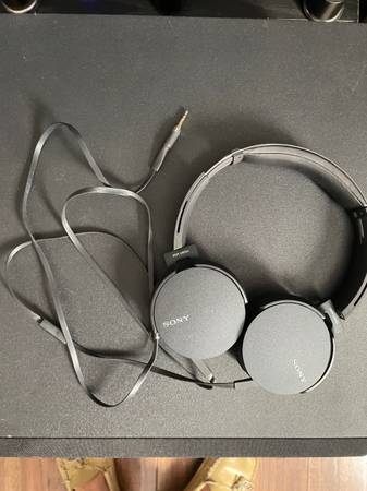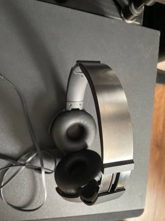 Black Sony MDR -XB550 on ear headphones. Has upgraded 3.5 mm plug and new pads and stainless headband. Strong bass with very good mids and highs.