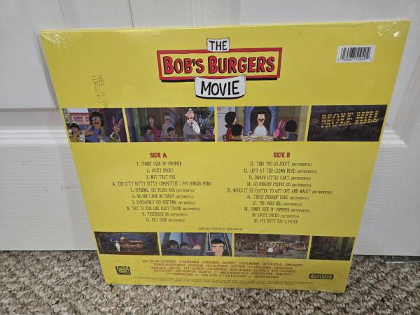 Motion Burger soundtrack, The Bob's Burgers Movie. Vinyl record pressed on mustard color vinyl. Pressed in 2023. Still sealed and in new condition. Pickup is in east Abbotsford.