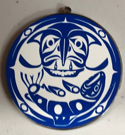 1) Blue and white totem like medallion
