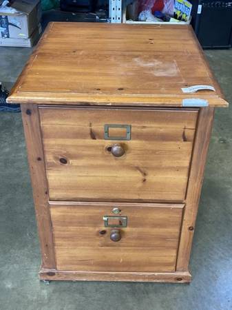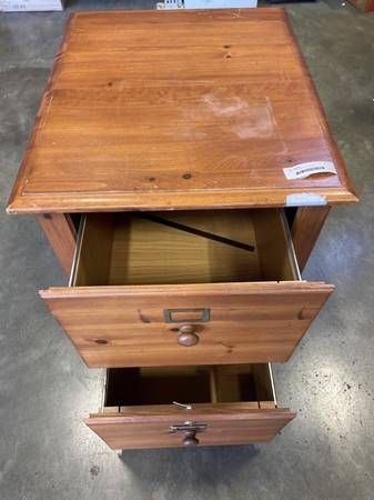 WOODEN FILE CABINET - OAK - 2 DRAWER A few marks but in very nice condition. Measurements are: 23 1/2" across by 28 1/2" deep by 30" high. Delivery can be arranged. Viewing and pickup by...