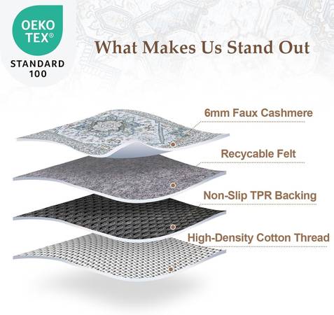 * Gentle on Your Skin: This 600 GSM ultra-soft low-pile area rug is made from premium faux wool fibers, designed to pamper your feet with every step with the ultimate cozy experience. The rugs for living room are washable, making them ideal for households