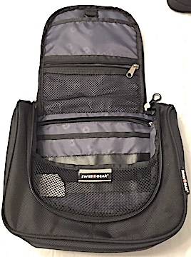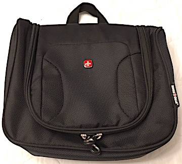 LAPTOP SLEEVE by SWISSGEAR: Black, with main zippered compartment that holds laptops to 15.6inches (or iPad?). With front zippered compartment for business cards, pens, cables, charger, etc. and two top carry handles; Plus: SWISSGEAR Hanging Toiletry Kit Holdall. Ideal for travel, featuring a main compartment with multiple organizer pockets, a water resistant zippered pouch, and a zip around flapped opening with a hanging hook that keeps flap open for easy access to contents. Also has a grab handle. Both in excellent, barely used, condition. Selling together as a pair but will separate at $10 each, or try an offer. Pickup Chilliwack from non-smoker home.