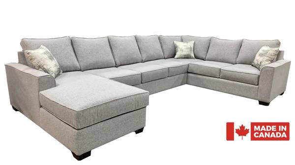 Larissa, Deluxe, Sectional, Chaise, Wood, Canadian Made, Grey, Domestic, Made to order