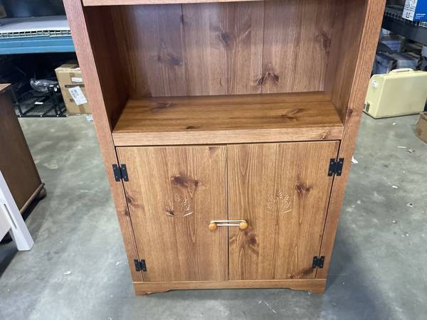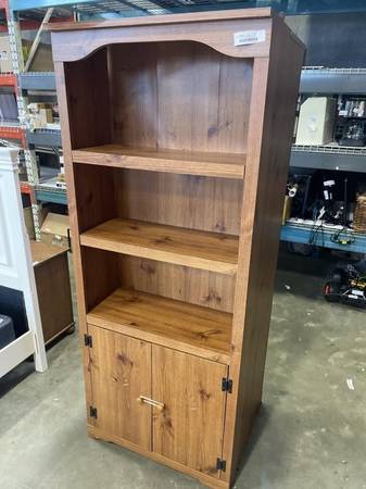 BOOKSHELF - LARGE SIZE WITH CABINET - MAPLE FINISH In very good condition. Measurements are: 29 1/2" across the front by 13 1/2" deep by 72 1/2" high. Delivery can be arranged. Viewing and pickup by...