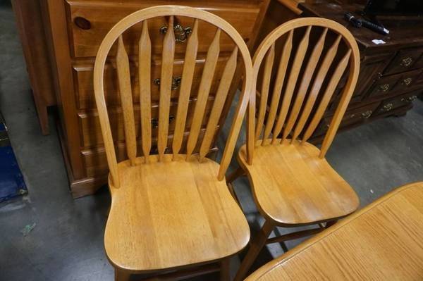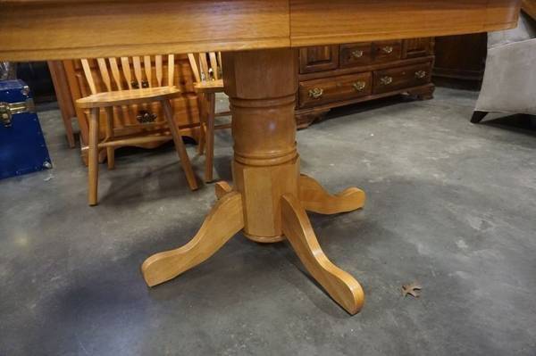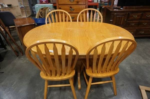 ROUND DINING TABLE w/Leaf 4 HOOPBACK CHAIRS