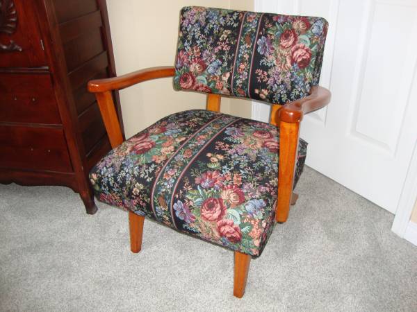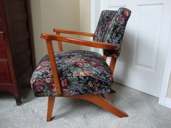 MCM rocking slipper chair. Reupholstered in good condition. $65