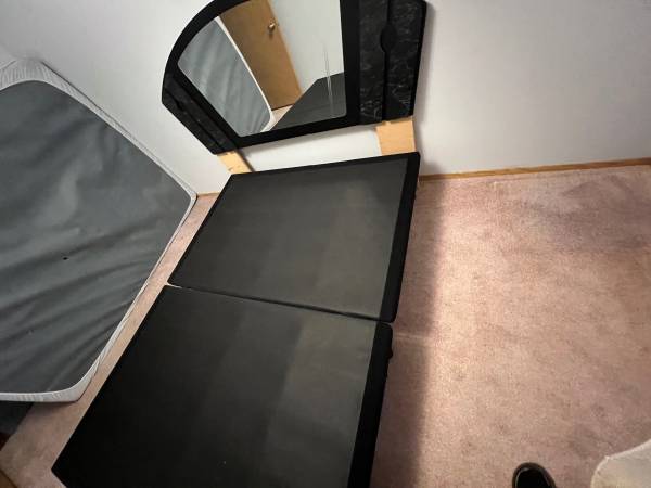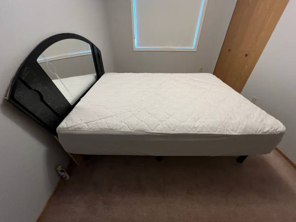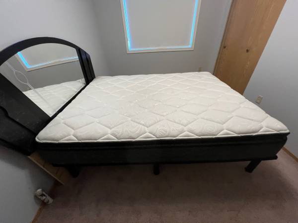 1 Queen size bed set for sale in Chilliwack BC. Mattresses like new, new bed platform, wooden headboard, water poof mattress protection, fitted sheet, adjustable bed feet