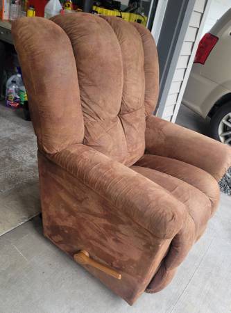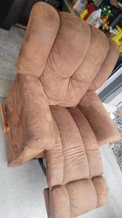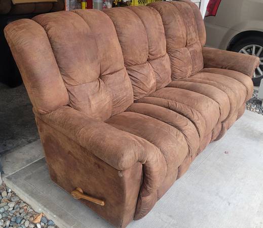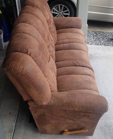 Excellent condition milk chocolate colored microsuede recliner sofa and matching rocker recliner from LaZBoy