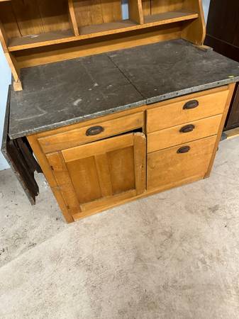 598 – Old Prairie Kitchen Cupboard $750.00 Old Prairie Kitchen Cupboard with original tin counter top. Check out my Instagram account @ bcfilmprops Call or text Al @