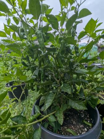 They were planted in Pro Mix organic outdoor potting soil and amended with organic fertilizers and nutrients throughout the growing seasons. They are healthy, prolific plants. Asking $40 each firm. Each plant is full of peppers and flowers.
