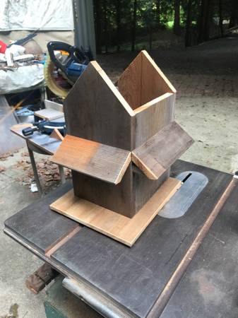 All cedar bird house kit ,4 pre-cut walls and 2 piece roof, and base ( no windows or door , no paint or outside items , just the building )) $40 cash ,9.5 x 11.5 x 16 inches tall ,NO email or text . phone if interested ,Rob show contact info