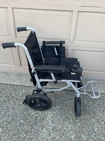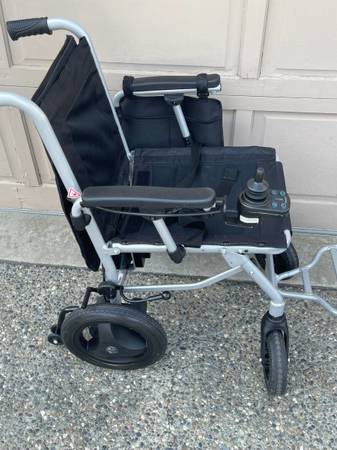 Lightweight - under 35lbs Foldable; just under 2yrs old; travels up to 70km on a single charge; speed setting; includes side pouch for phone, wallet etc;