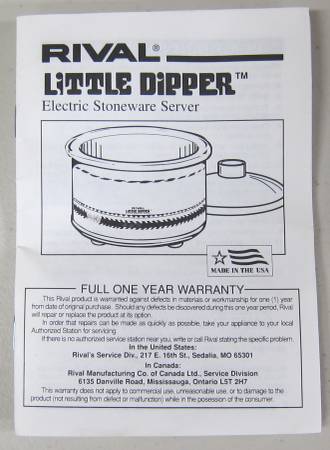 This is a Rival Little Dipper Electric Stoneware Server. Model 3204D.