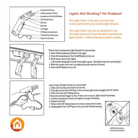 Ladderless "Lights On" Light Tester - for LED & Incandescent String Lights