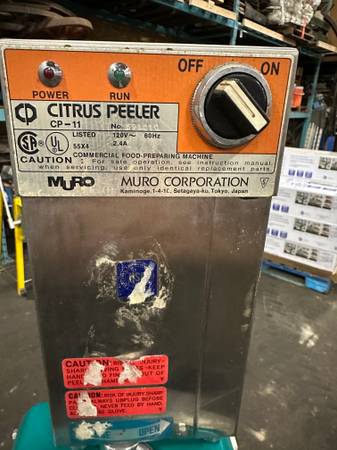 590 – Apple / Citrus Peeler Electric Commercial Apple/Citrus peeler by MURO. Manufactures by Muro Corporation in Japan. Check out my Instagram account @ bcfilmprops Call or text Al @