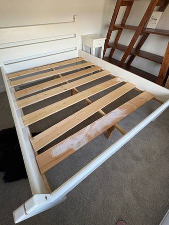 Queen Bed Hand made with 2 side tables - painted white Plus 2 side tables Price $200.00