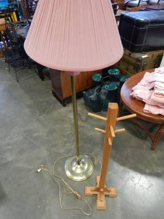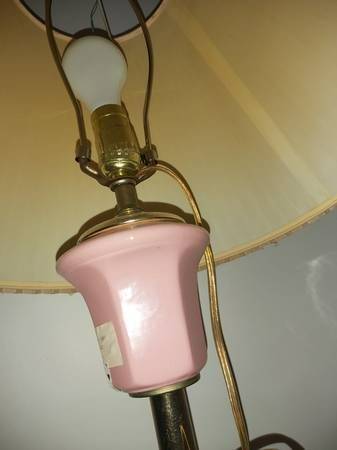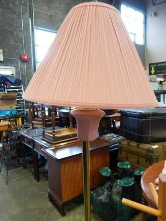 VINTAGE BRASS PINK FLOOR LAMP WITH SHADE