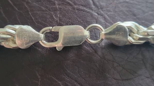 This ain't like the hollow little rope chain you got from your grandma at Christmas last year. This one is solid .925 silver (not hollow) and weighs 89.4 grams!