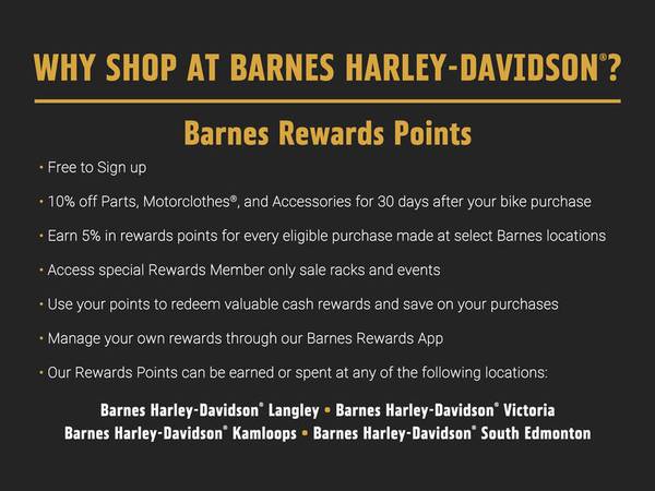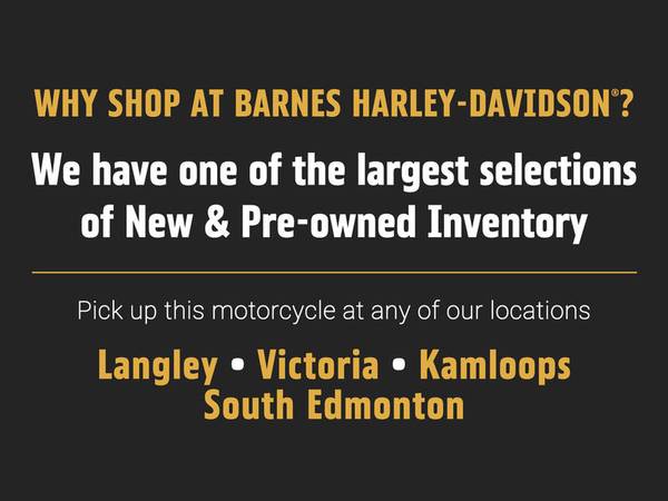 For Your Convenience, Take Delivery Of This Motorcycle At Any Of Our Barnes Harley Davidson Langley, Victoria, Kamloops Or South Edmonton Locations. Ask Today.