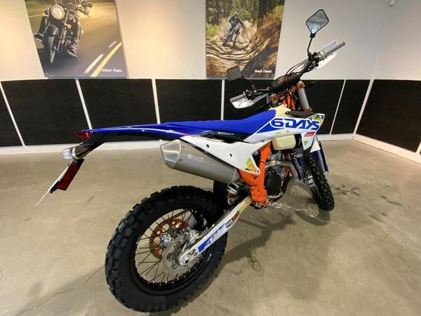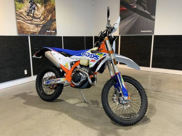 Few machines can hold their own against the KTM 500 EXC-F 6DAYS. Power, torque, unmatched handling, and pure 4-stroke fury puts this dual-sport weapon in a class all of its own. Packing a punch, complete with closed-cartridge suspension, and an electronics package that puts its rivals to shame, the KTM 500 EXC-F 6DAYS is ready to take on any challenge.