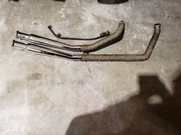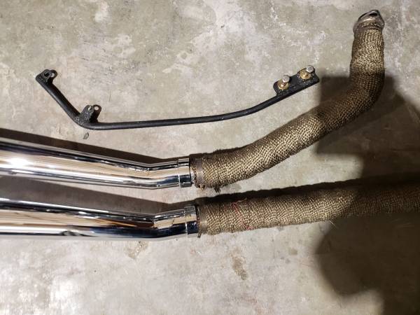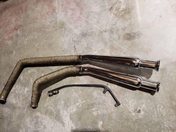 Shovelhead exhaust with mounting bracket in very nice condition. $275.00