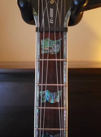 2017 LTD EC-1000 Deluxe made in Korea up for sale. Pickups upgraded to EMG HET set, originals not included. Features Tonepros locking bridge/stoptail and LTD locking tuners. Beautiful Rosewood fretboard and abalone inlay! Just had a full pro setup, frets are polished and the fretboard is oiled. Intonation and action set up with Ernie Ball Hybrid 9-46 Slinkys. The guitar plays and presents well! There's some light worming etc. on the back and the swirls and light marks you expect on a black guitar that's been played but not abused. Meet in Chilliwack for pickup.