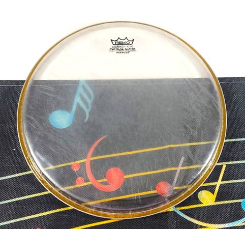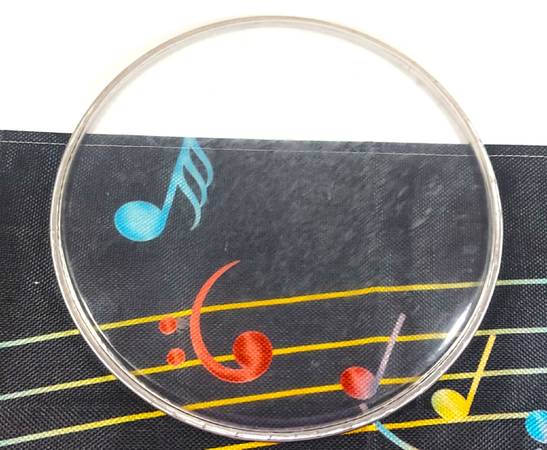 1 X 10” GENUINE GRETSCH CLEAR DRUMHEAD - made by Remo USA. Single ply clear mylar film. This 10" is really sweet sounding...and resonates more than expected with the die cast hoops. It's very close to USA custom tone. It has a pretty wide range but sings best at mid tuning.