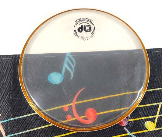 1 x 10” DW Clear Batter Drumheads – Still around, yay! …. because if you're looking to recapture the magic of the first time you played your kit, this is your chance! This hybrid head provides the "wet" attack and full resonance of a clear head, but with a coated silk screened edge to provide just the right amount of overtone damping without sounding choked. DW Clear heads feature Remo's glued-channel crimped aluminum flesh hoops; these hoops help to transfer the maximal vibrational energy between the head and drum and also keep the heads from pulling out through high tensioning.