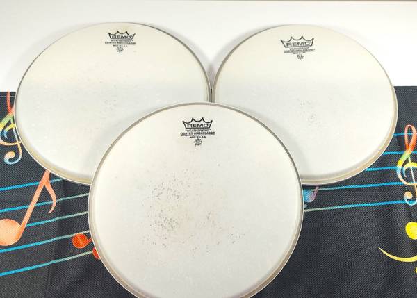 3x 10”Remo Weatherking Ambassador Coated - this is the most popular drumhead in the world, featuring the perfect combination of warm, open tones with bright attack and controlled sustain. This Vintage Drumhead features the durability of the Ambassador with a unique soft feel reminiscent of calf heads with a snare response accented for backbeats, ghost notes, brushes and press rolls. with a soft feeling. Provides focused mid range tones and soft feel; 7.5-mil and 3-mil Coated films combined into a durable 2-ply construction; The most versatile Tom and Snare drumhead in the industry