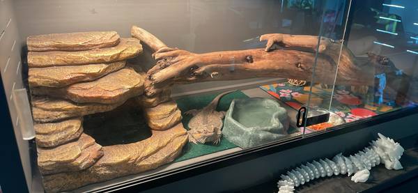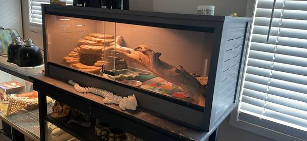 Front opening ecoflex terrarium with fully equipped 5 piece habitat, dual heat lamps and two digital thermostats 46Lx18Wx18H