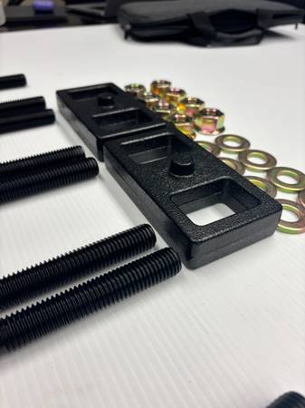 ReadyLIFT OEM style rear block kits are available for the 2011-2024 GM 2500 HD single rear wheel pickups with the factory Trailer Package rear springs. Includes 2 1" Rear Blocks, 4 E-Coated U-Bolts, 8 Nuts and Washers and will safely lift the rear of your 2011-2024 2WD and 4WD 8-lug Single Rear Wheel GM trucks with trailer package spring 1". Made from cast iron