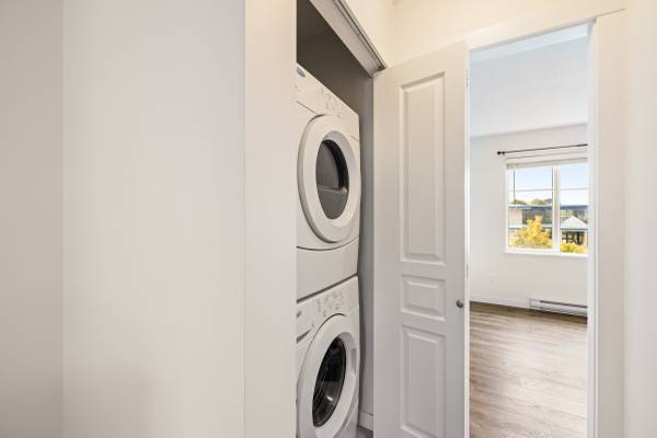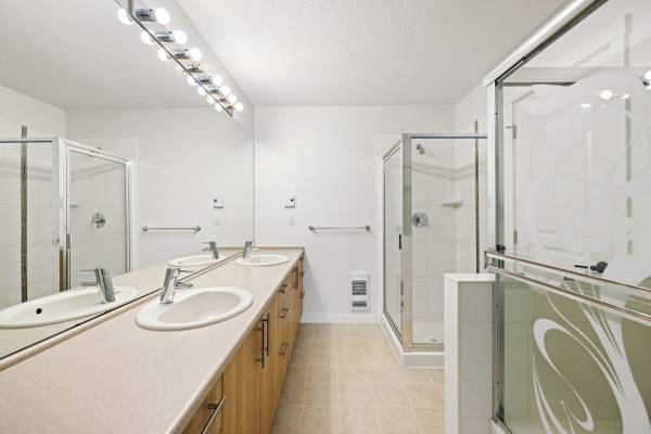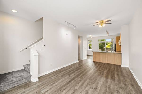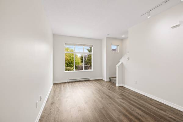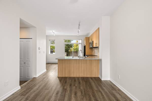 FANTASTIC VALUE! Why buy a condo when you can own a townhouse! This 2-bed, 1-bath townhome offers over 1,000 sq/ft in a master-planned community by Polygon! The OPEN floor plan features newer vinyl plank flooring, kitchen w/granite counters, S/S appliances, new dishwasher, dining area, spacious living room + a RARE walk out private yard off the main floor! Upstairs features a large primary bedroom w/cheater ensuite equipped w/double sink, separate tub & shower + another good sized second bedroom! Single car garage + a huge pad in front, big enough to fit a large pick-up truck! Across the street from Rick Hansen High School & a short walk to Eugene Reimer Middle School & Harry Sayers Elementary. Enjoy access to resort-style amenities! Pool, hot tub, gym, hockey room, guest suite & more!