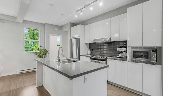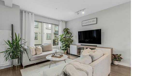 Welcome to Ashbury & Oak South by Polygon! This 2 BED + 2.5 BATH townhome features a bright, open layout with 9’ ceilings, powder room on the main, and a spacious kitchen perfect for entertaining. Upgrades include a dining room mirror and new light fixtures. Upstairs offers 2 large bedrooms, including a primary with custom walk-in closet and an ensuite with double sinks. A private side-by-side 2-car garage adds convenience and storage. Residents enjoy access to Kinfolk House, an 8,000+ sqft clubhouse with resort-style amenities including pool, hot tub, gym, guest suites, and more. Ideally located close to schools, parks, shopping, and transit in a sought-after family-friendly community.
