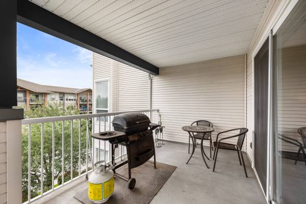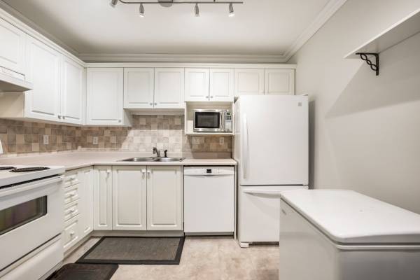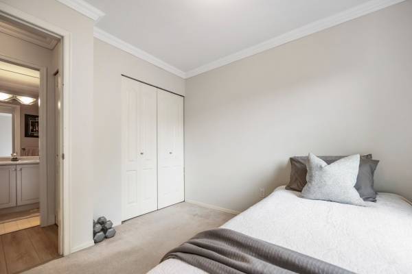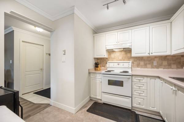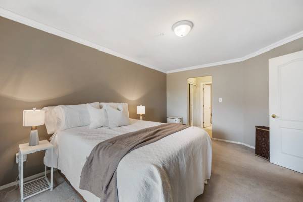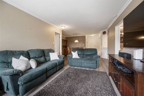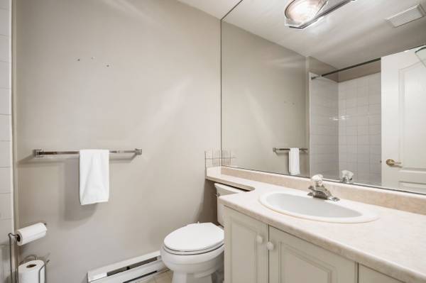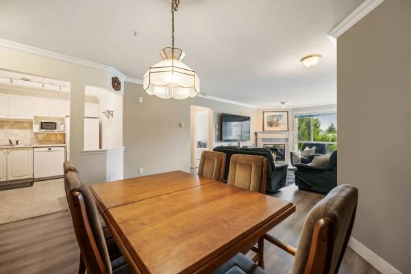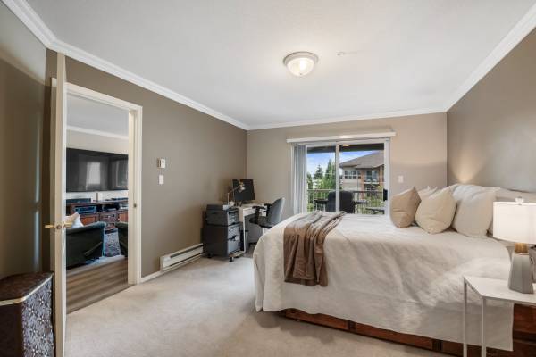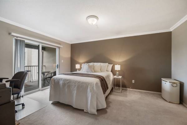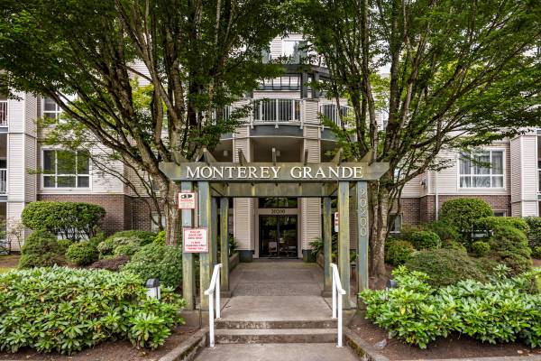 Welcome to Monterey Grande! This rarely available top-floor 2-bed, 2-bath condo offers 1,030 sq ft of spacious living in a quiet location. Enjoy mountain views from your large covered deck, relax in the soaker tub and cozy up by the gas fireplace. Crown mouldings are also a feature of this condo! The bedrooms are on opposite sides of the suite for ample privacy. The well-managed building features an amenity room, bike storage and workshop. Includes one storage locker, conveniently located right beside your suite, plus one parking spot. Centrally located - close to shopping, restaurants, an off-leash dog park and a future Skytrain station. Book now for your private viewing.