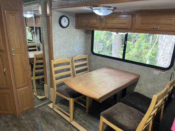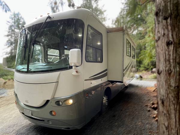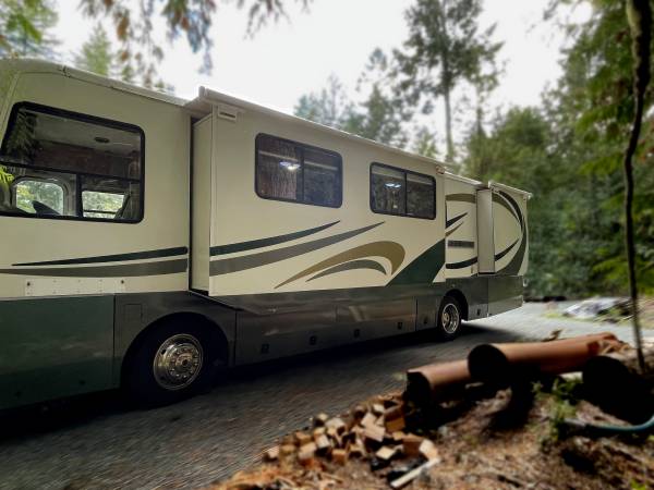 2004 37ft Coachman Cross Country, class A, 2 slides, beautiful coach sleeps 4, reupholstered love seat and couch. Owner is looking for a potential trade for a toy hauler. Included is a towing package with an 8000 lbs towing capacity, back up camera and driver requires an air brake license for proper operational use of the air brake system. Complete tune up on electrical, transmission controls, and engine assuring proper activation of all operations.