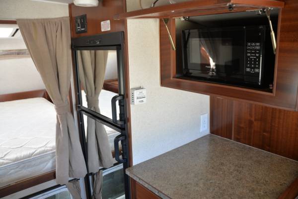 Dry bath 2016 model EXRR. Four Season camper 5 star rating. For a long box truck. Electric jacks, Flat screen TV, DVD/CD/am/fm stereo, large 3 way fridge (6.3 cubic feet) with separate freezer, Dometic acrylic twin sealed thermal pane windows, screens and darkening shades,