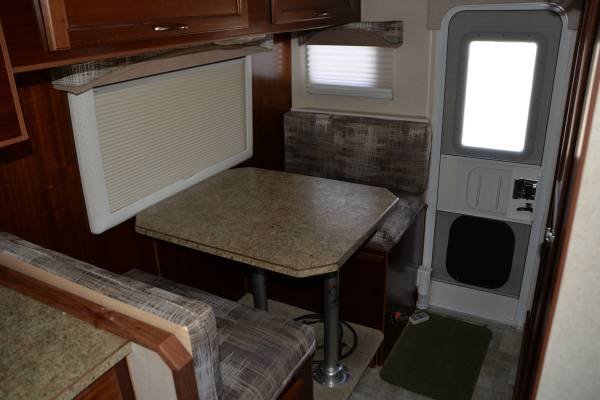 AC (can work with a Honda 2000), 90 watt solar panel and controller, Queen size N/S bed, table turns into bed, microwave, heated tanks and basement, interior headroom 6’8”, outside shower, four Torklift FastGun stainless tie downs with locks, fresh water 42 gallon, black water tank 18 gallon, grey water 40 gallon, dry weight 2800 lbs, optional flip down “bumper patio”, Pull out pantry, sliding propane tray, LED lighting, Large sliding basement tray, Swingout brackets (for dually), 2 new 6 volt batteries, 2 x 20lb propane tanks. Brochure available. Camper is located in Kelowna. Price: $44700.