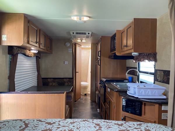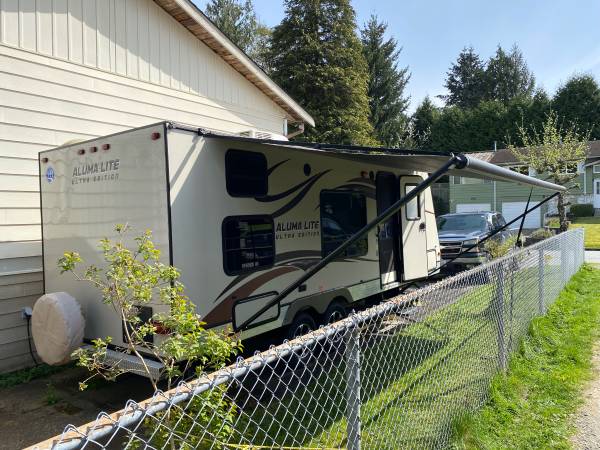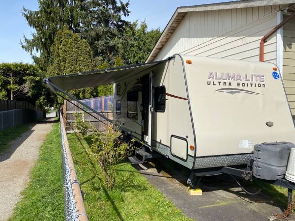 2012 Alumalite Holiday Rambler RV trailer. Great condition. Properly winterized every off season. Only used 2-3 times per camping season. No interior damage. Water system, heating and air conditioning in excellent working condition. Microwave, fridge, stove and audio sound system are also in excellent condition. All lighting upgraded to LED.