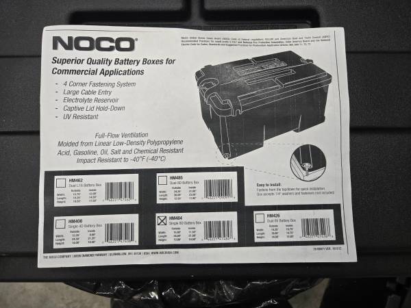 12v 300A Renogy Lithium Iron Phosphate battery, brand new, never used. Comes with Noco Battery Box, also never used.