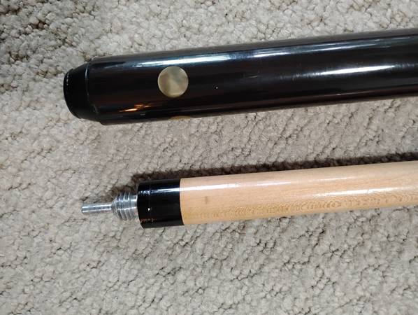 Very nice early Dufferin pool cue, black ebony and maple in excellent condition , no dings no dents no damage, 18 oz. 10 1/2 mm tip size $5500 Firm.