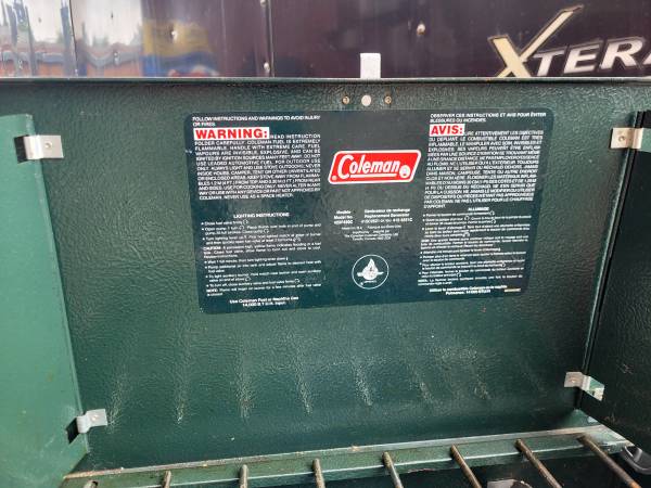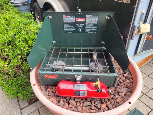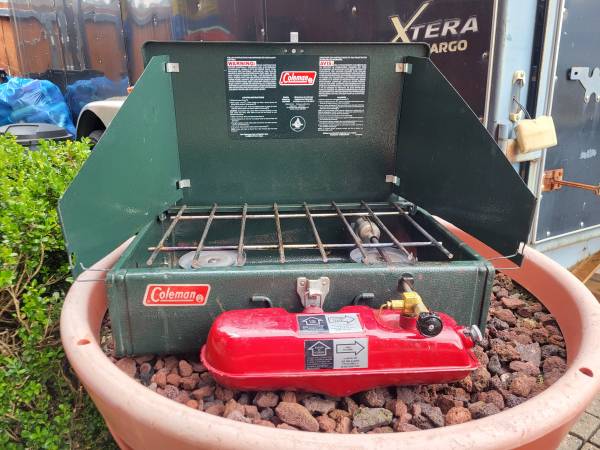 Great working condition 2 burner camp stove. Burns Coleman fuel not propane.
