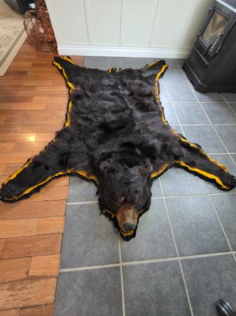Beautiful BC Black bear rug. Makes a great focal point for a home or cabin. Measures 63" wide and a length of 72". Asking $995 obo. To view/info call James 604-217-735four.