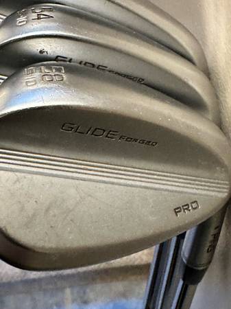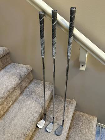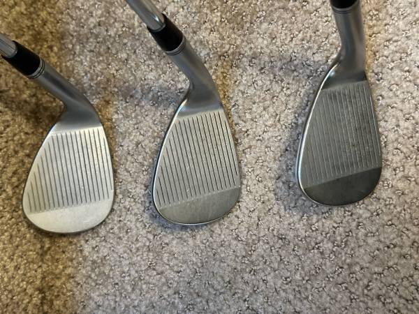 Three wedges that are in great shape and play so well. In very good shape. Brand new grips. New Decade plus 4. Shafts are stiff and 120 grams. Lots of spin in these premium wedges.