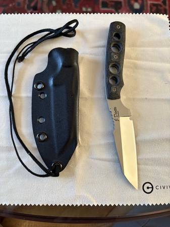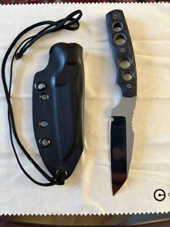 Jeff Diotte Piranha Neck Knife, micarta handle with mosaic pins, 3" 154 CM Wharncliffe Blade, purchased directly from the maker, never used never carried, comes with original Kydex Sheath $250